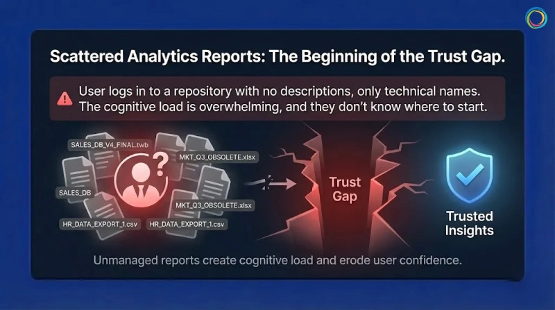 This is where the trust gap begins. When users cannot easily find certified, validated bi dashboards, they lose confidence in the entire analytics ecosystem. The problem isn't data quality - it's the delivery layer creating friction between users and insights.